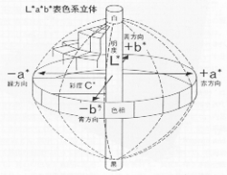 *色空間(CIELAB色空間)による表示の仕方を示します(国際照明委員会,1976)。L