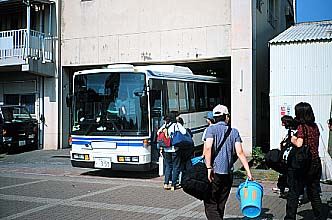 大学のスクールバスにて鹿児島新港に出港