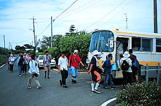 バスにて前浜海岸に向かう