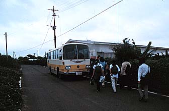 バスにて宿舎を出発する