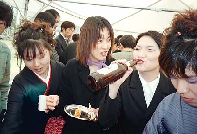 理学部中庭で理学部主催卒業パーティー