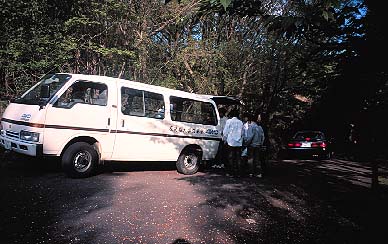 車で到着する