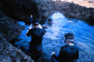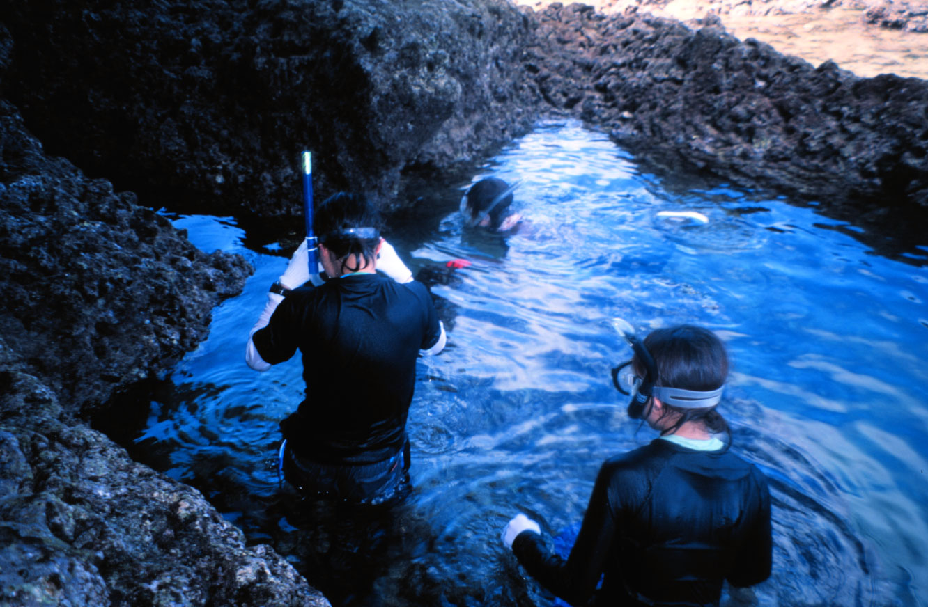 前浜海岸にてサンゴ礁の観察