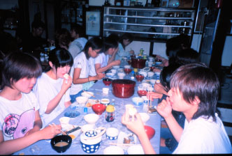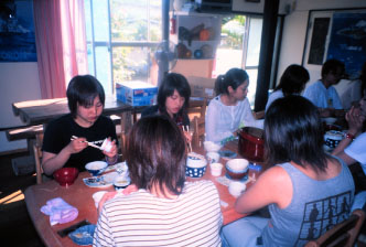 宿舎で朝食