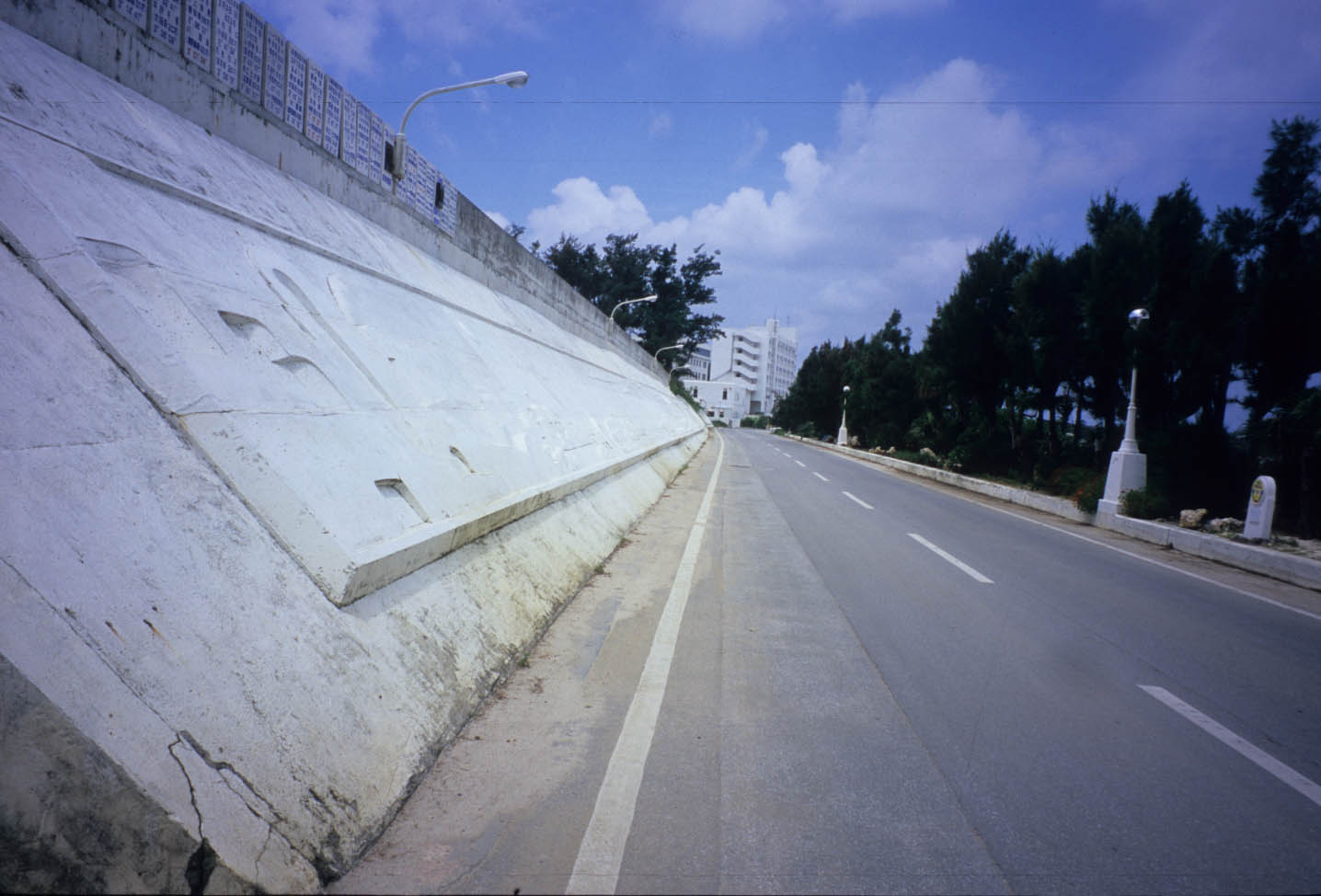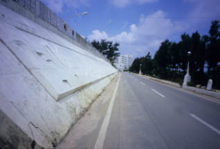 茶花港前のミコノス通りとレリーフ